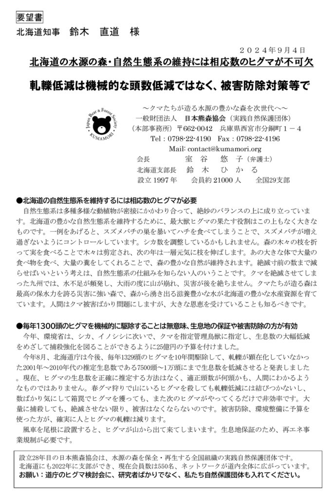北海道庁に要望書を提出してきました。